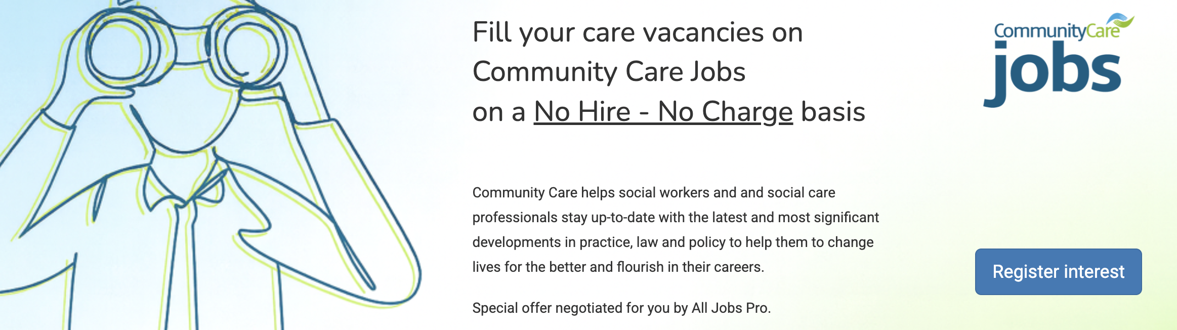 - Community Care Jobs advertises your roles to their large audience of qualified social care professionals.