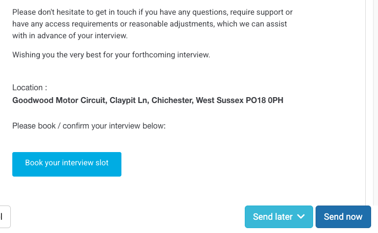 If your organisation interviews candidates across multiple locations, it’s important that candidates are given the correct address for their in-person interview.